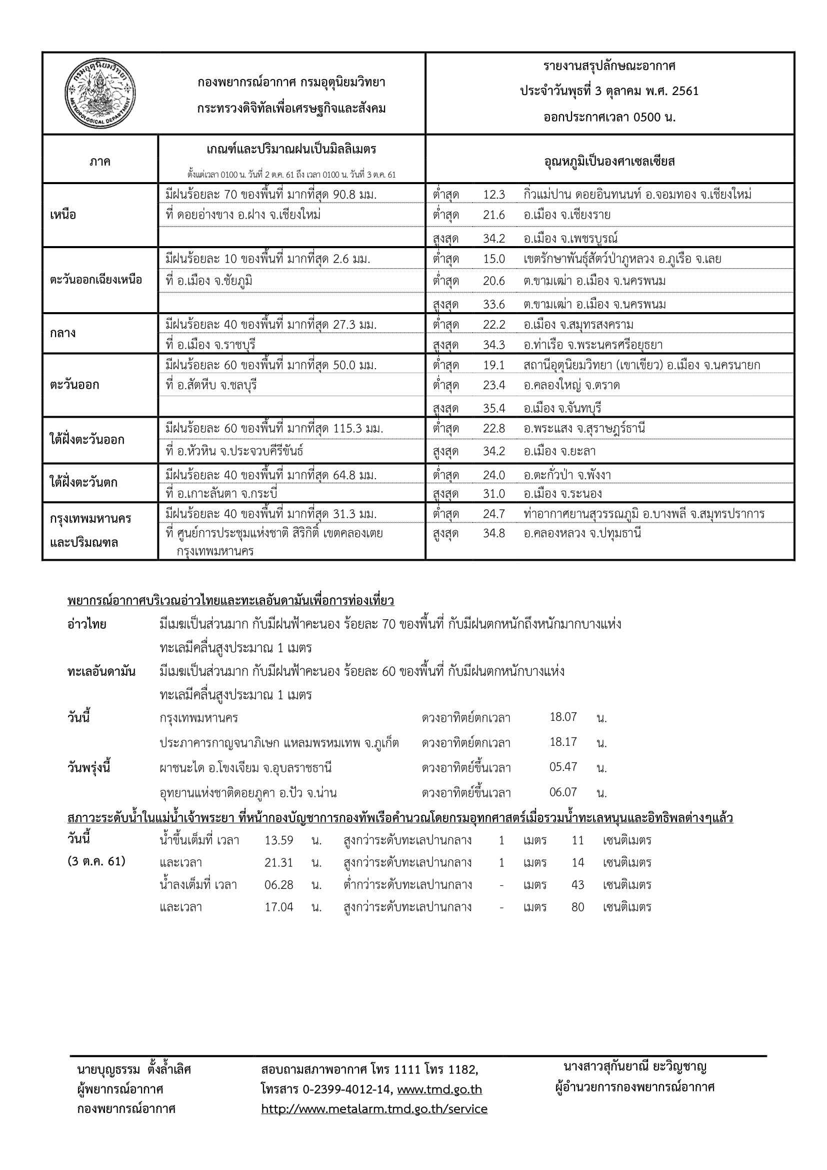พยากรณ์อากาศประจำวันที่ 3 ตุลาคม 2561