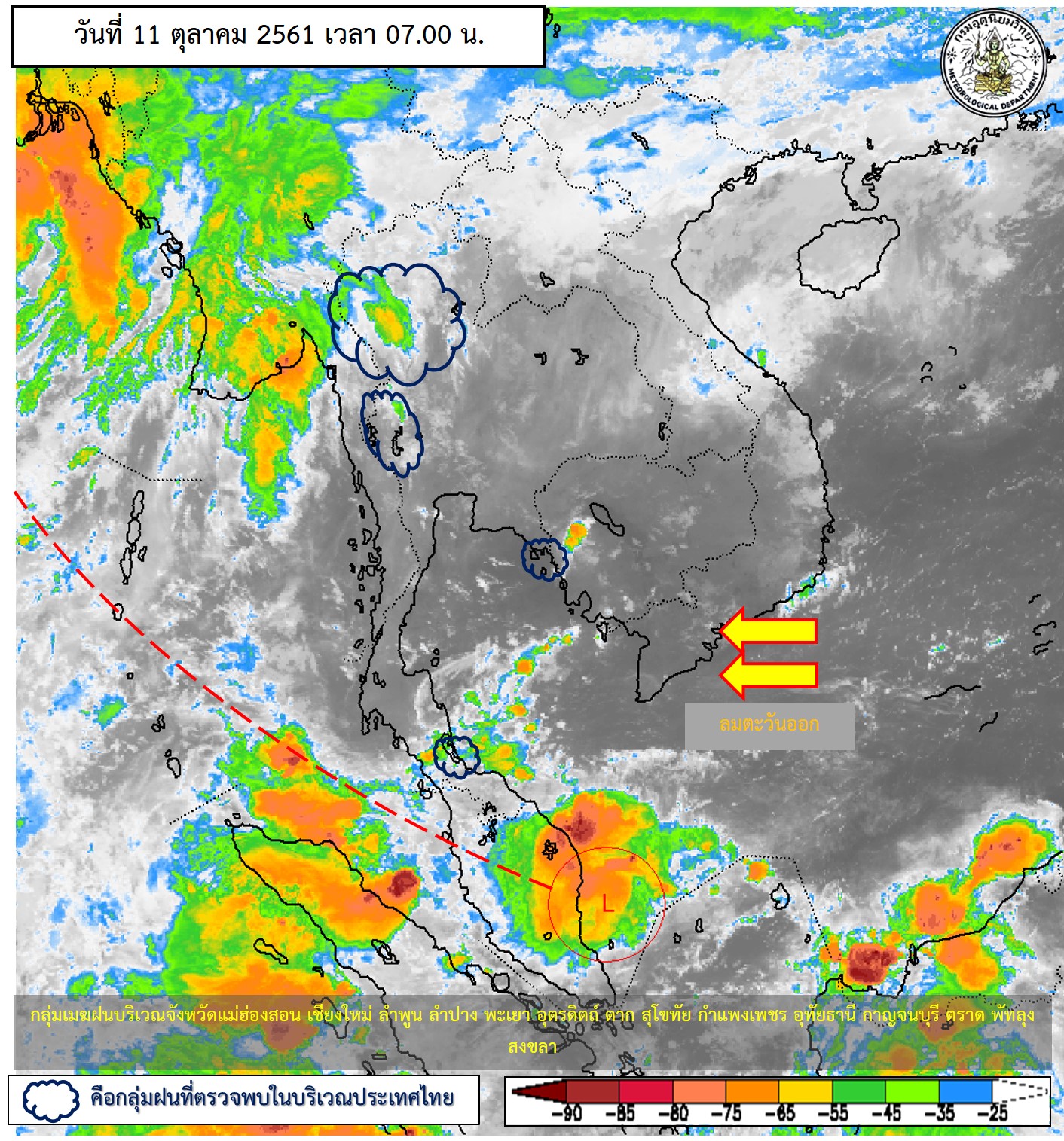 ภาคกลาง-มีเมฆบางส่วน กับมีฝนฟ้าคะนอง ร้อยละ 20 ของพื้นที่ ส่วนมากบริเวณจังหวัดอุทัยธานี ราชบุรี และกาญจนบุรี