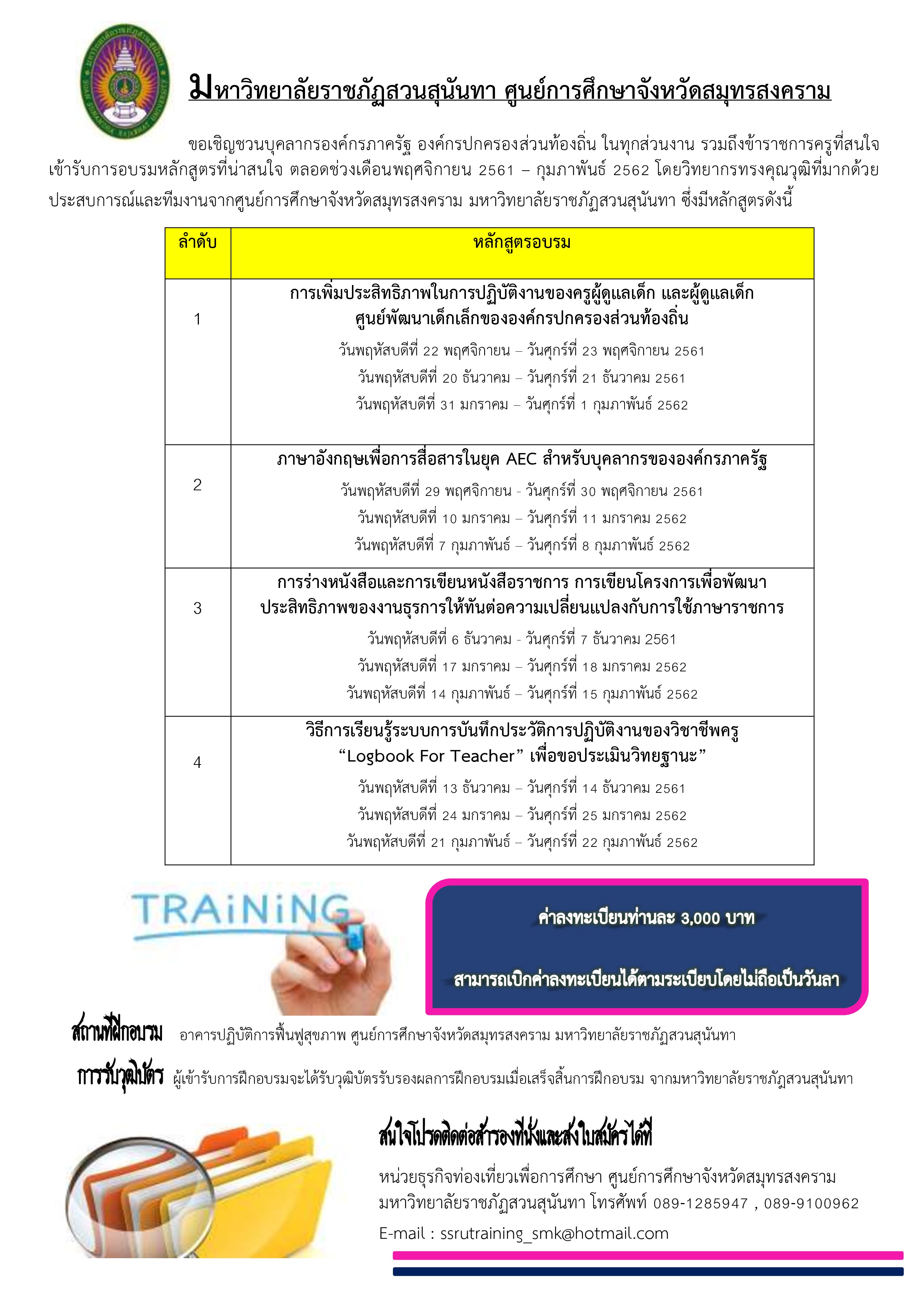 ขอเชิญชวนผู้ที่สนใจเข้าร่วมโครงการอบรมเชิงปฏิบัติการ ตลอดช่วงเดือนพฤศจิกายน 2561 - กุมภาพันธ์ 2562.pdf