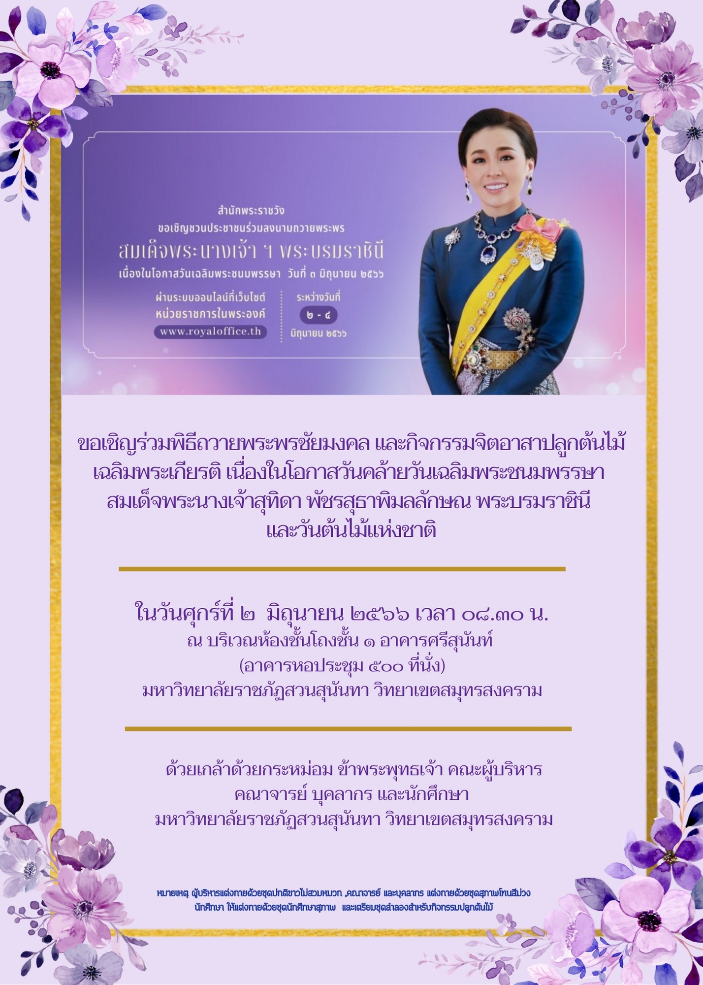 ขอเชิญร่วมพิธีถวายพระพรชัยมงคลและกิจกรรมจิตอาสาปลูกต้นไม้เฉลิมพระเกียรติ