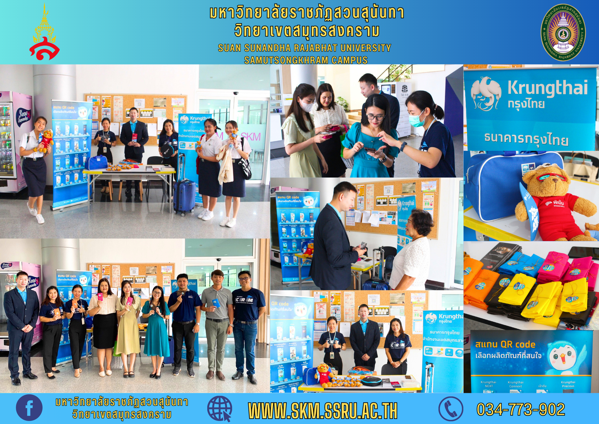 วันนี้ (วันที่ 16 สิงหาคม 2566) ธนาคารกรุงไทย ตั้งบูธประชาสัมพันธ์กิจกรรมส่งเสริมการขาย นำเสนอผลิตภัณฑ์ของธนาคาร ได้แก่ ผลิตภัณฑ์เป๋าตังค์เปย์วอลเล็ต รวมถึงผลิตภัณฑ์อื่นๆ ของธนาคาร พร้อมกิจกรรมการร่วมสนุกรับของที่ระลึกสุดพิเศษ ให้กับบุคลากร นักศึกษา และผู้ที่สนใจ โดยกิจกรรมดังกล่าวจัดขึ้นระหว่างเวลา 08.30 – 16.30 น. ณ หน้าศูนย์อาหาร SKM Food Center ชั้นที่ 1
