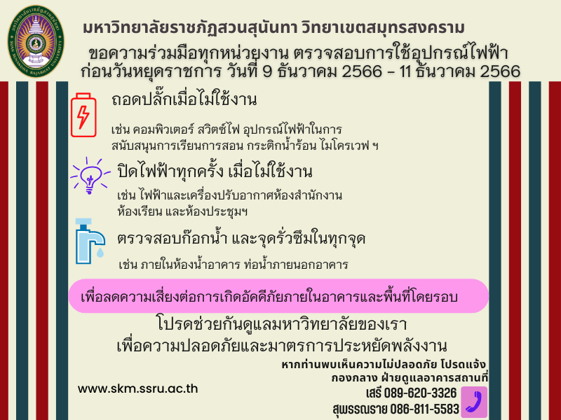 > ประชาสัมพันธ์มาตรการป้องกันเหตุเกิดเพลิงไหม้ช่วงวันหยุดยาว