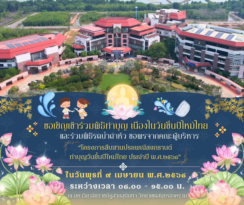 ขอเชิญชวนคณะผู้บริหาร คณาจารย์ บุคลากร และนักศึกษา มหาวิทยาลัยราชภัฏสวนสุนันทา วิทยาเขตสมุทรสงคราม
