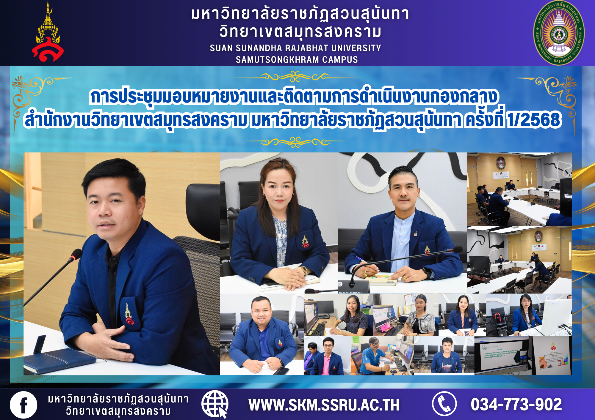 มหาวิทยาลัยราชภัฏสวนสุนันทา วิทยาเขตสมุทรสงคราม นำโดย นายเอกชน น้อยเงิน ผู้อำนวยการกองกลาง สำนักงานวิทยาเขตสมุทรสงคราม เป็นประธานในการประชุมมอบหมายงานและติดตามการดำเนินงานกองกลาง สำนักงานวิทยาเขตสมุทรสงคราม มหาวิทยาลัยราชภัฏสวนสุนันทา ครั้งที่ 1/2568 พร้อมด้วยหัวหน้าฝ่ายฯ และบุคลากร กองกลาง สำนักงานวิทยาเขตสมุทรสงคราม