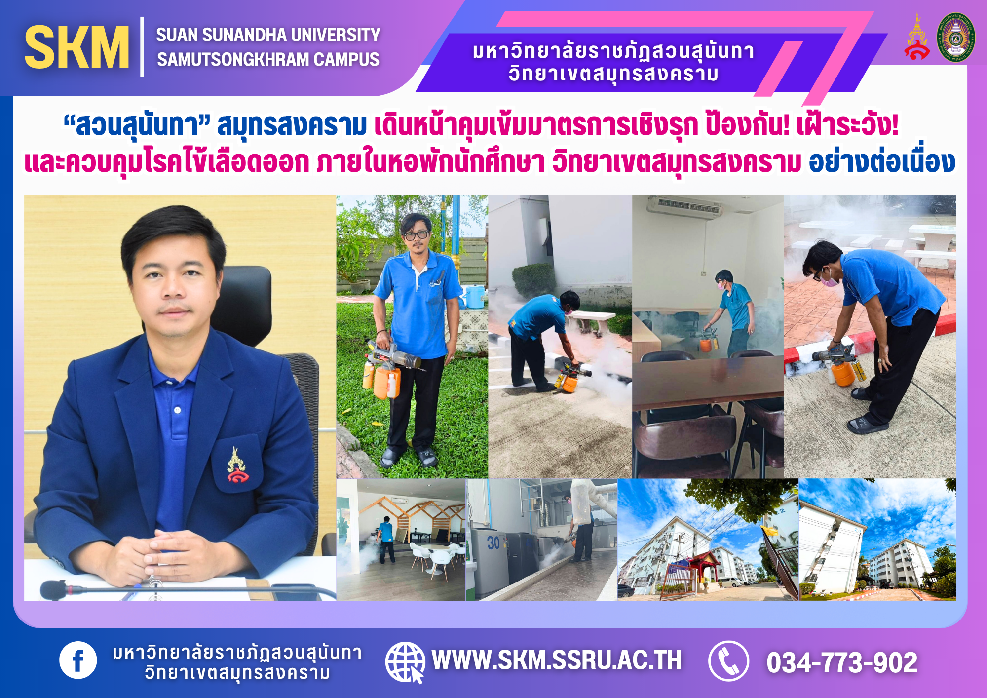 มหาวิทยาลัยราชภัฏสวนสุนันทา วิทยาเขตสมุทรสงคราม ได้ตระหนักถึงความสำคัญในการป้องกันโรคไข้เลือดออก โดยเฉพาะภายในหอพักนักศึกษา ซึ่งมีคณาจารย์ บุคลากร และนักศึกษา อาศัยอยู่ตลอดวัน