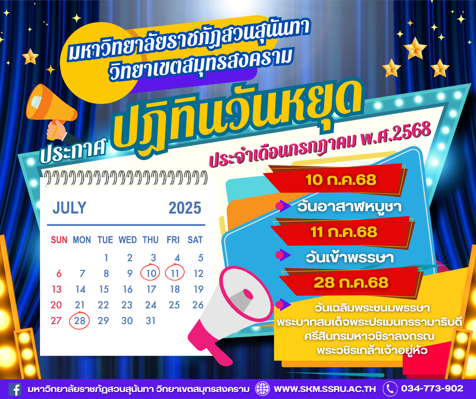 ประกาศปฏิทินวันหยุดประจำเดือนกรกฎาคม พ.ศ.2568