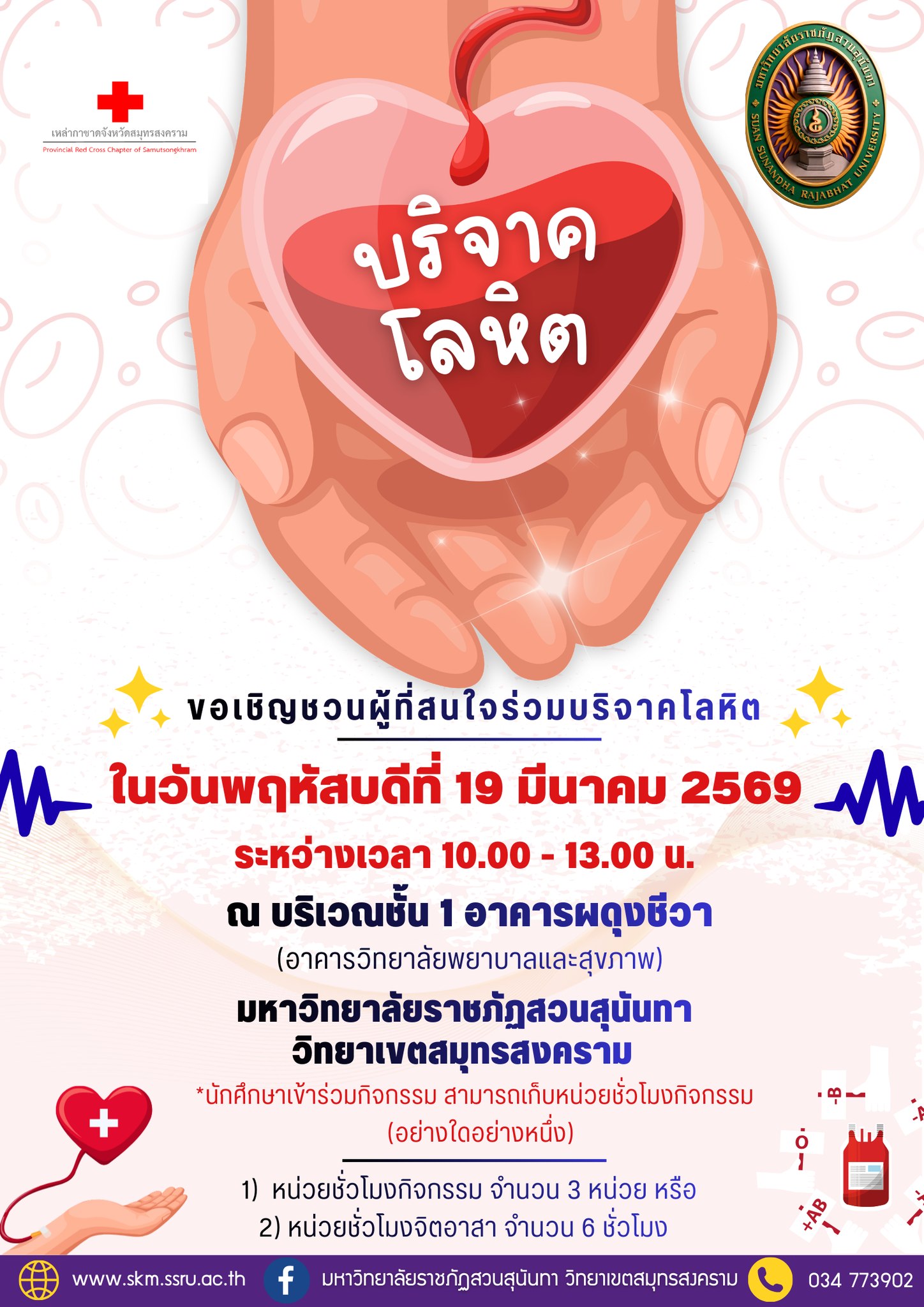 ประชาสัมพันธ์เชิญชวนผู้บริหาร คณาจารย์ บุคลากร และนักศึกษา ร่วมบริจาคโลหิต