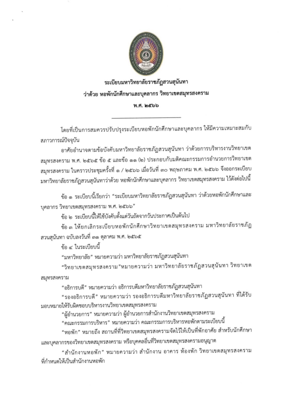 คลิ๊กอ่านที่นี่ >>> ระเบียบหอพักนักศึกษา
